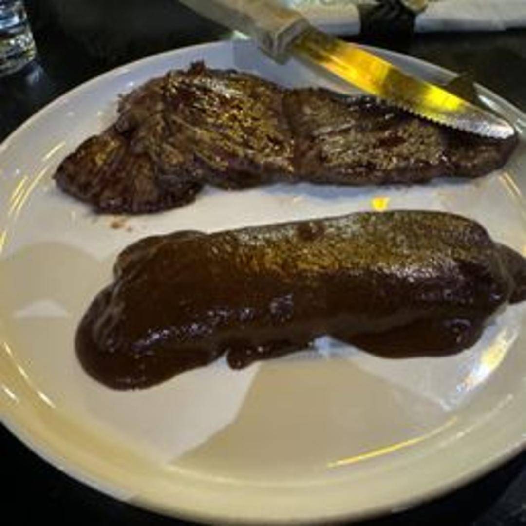 Grilled marinated steak, thinly sliced and seasoned. Served with grilled onions, guacamole, pico de gallo, rice, beans, and tortillas.