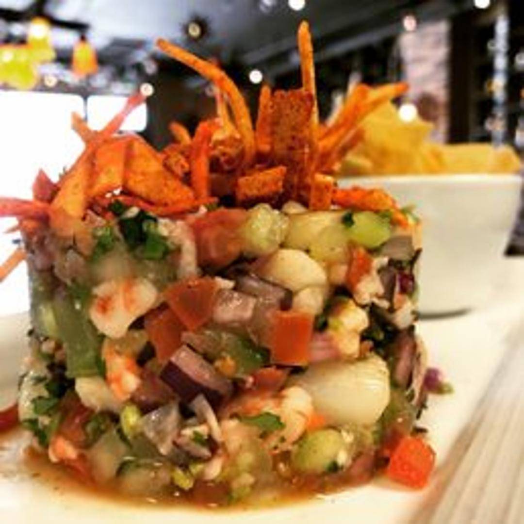 Fresh shrimp marinated in lime juice with tomatoes, onions, cilantro, and serrano peppers. Served with tortilla chips or tostadas.