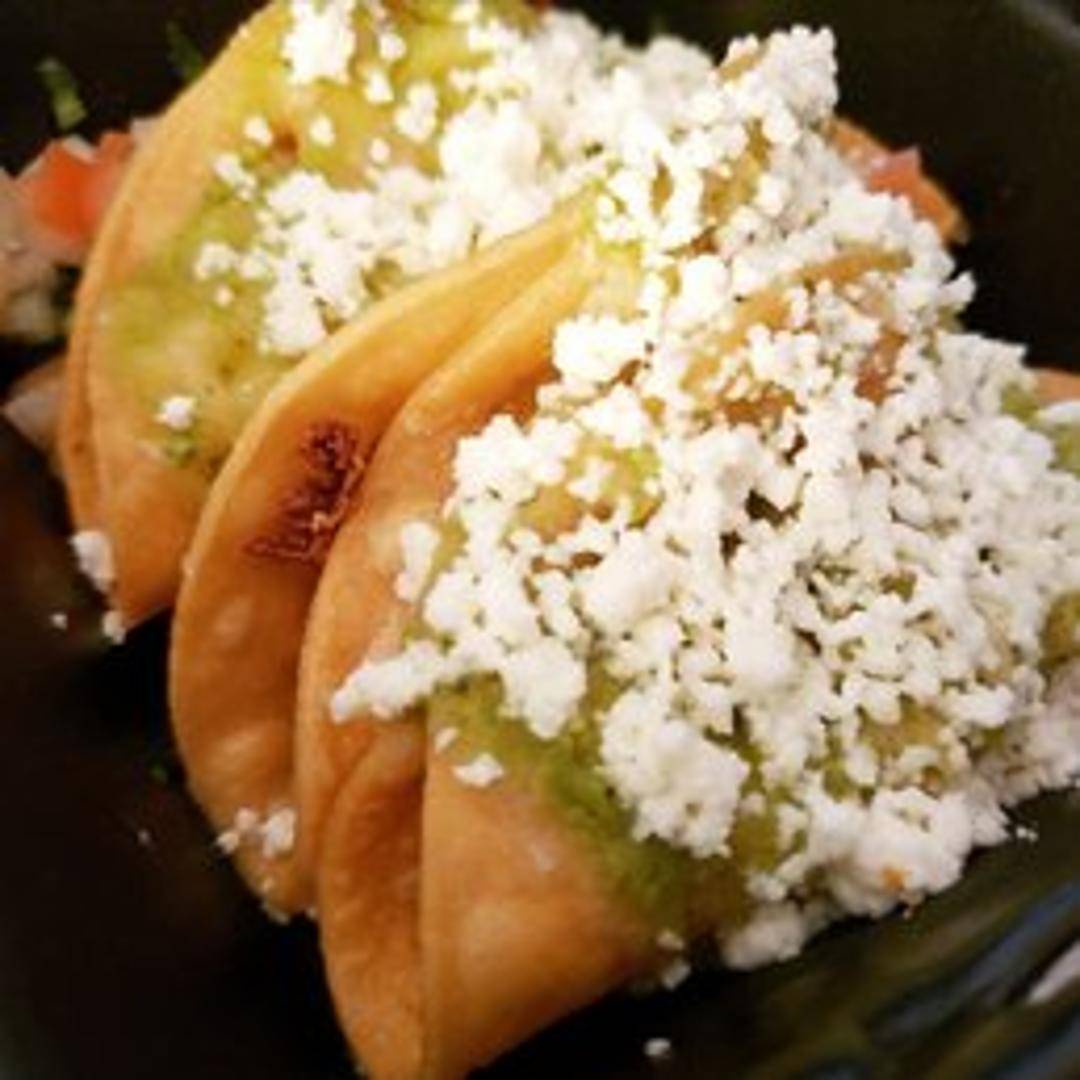 Crispy potato tacos topped with shredded lettuce, pico de gallo, and cotija cheese. Served with your choice of salsa.