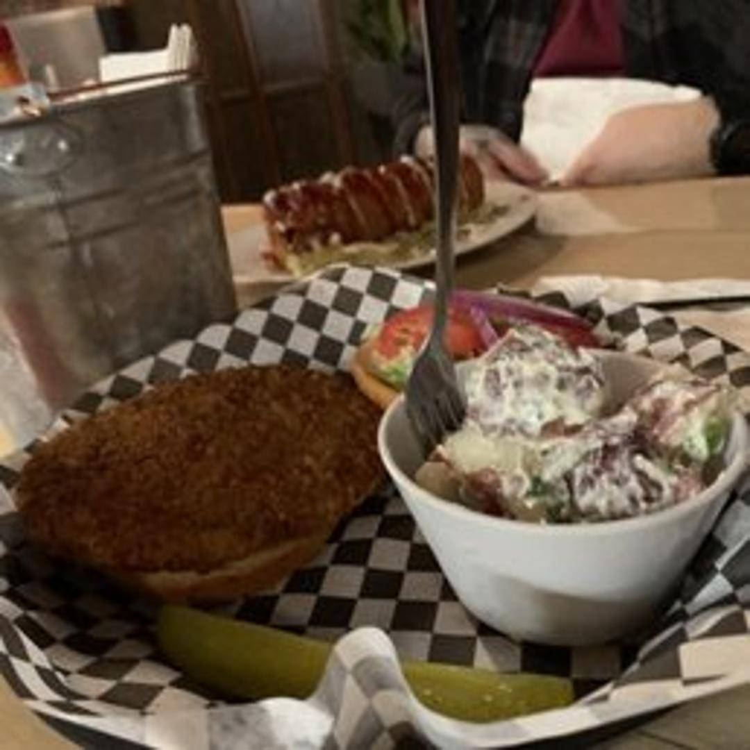 Crispy, golden-fried chicken breast served on a toasted brioche bun with crisp lettuce, juicy tomato slices, and mayonnaise. Served with your choice of side.