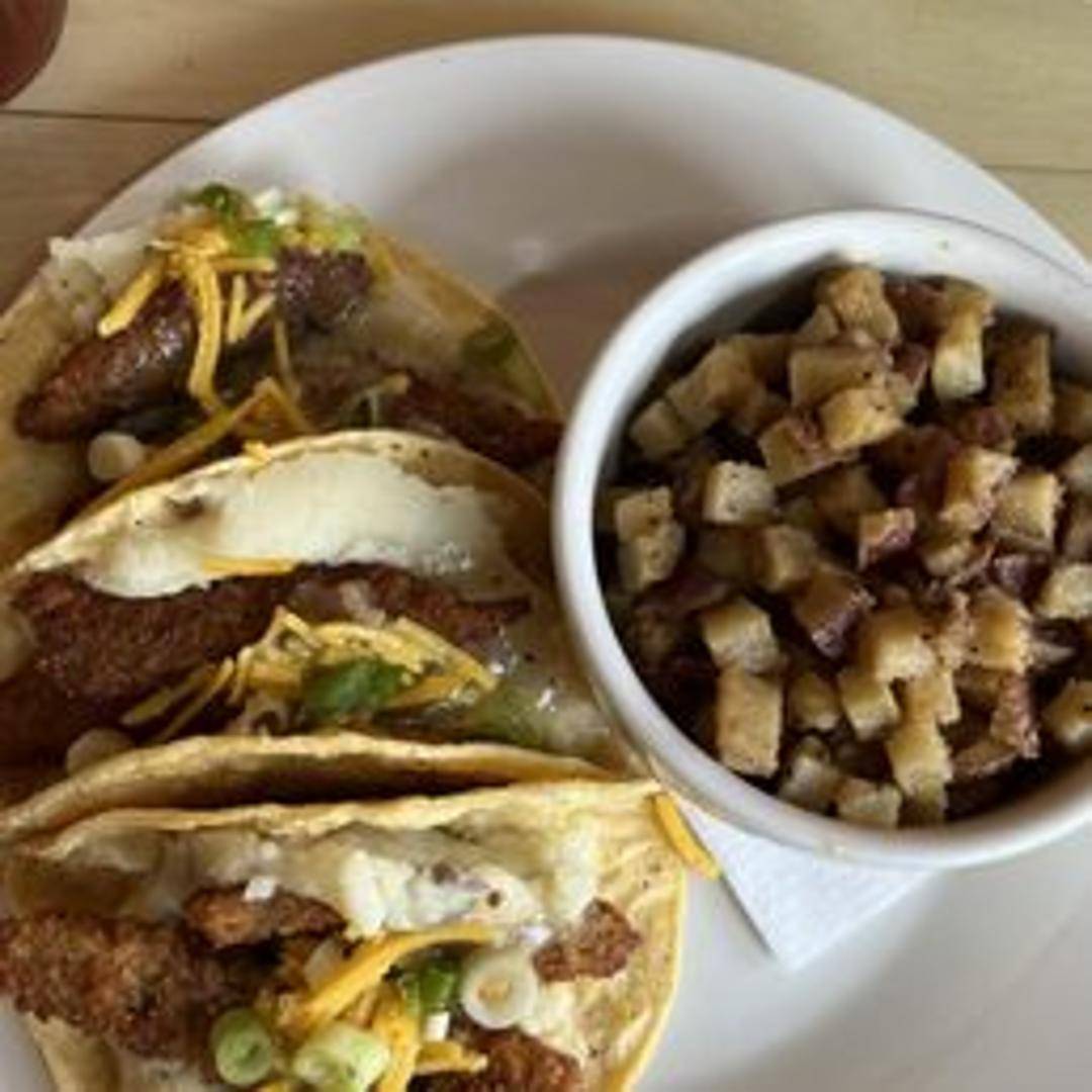 Three soft flour tortillas filled with seasoned ground beef, shredded lettuce, cheddar cheese, and diced tomatoes. Served with a side of sour cream and salsa.