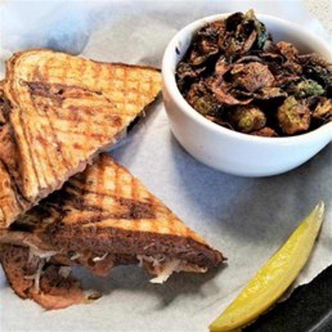 Grilled seitan, sauerkraut, vegan Swiss cheese, and Thousand Island dressing on toasted rye bread. Served with your choice of side.