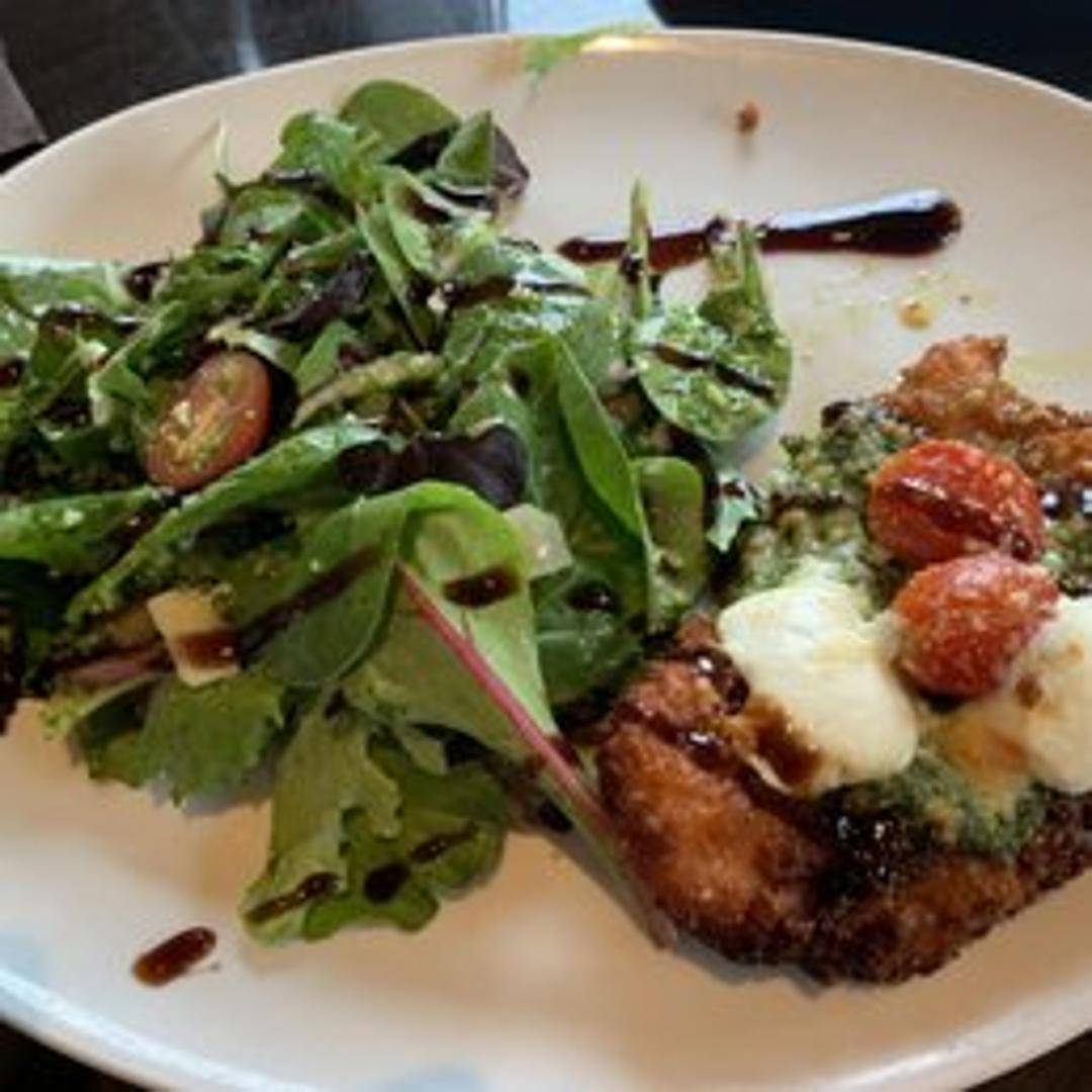 Grilled or pan-seared chicken breast topped with fresh mozzarella, sliced tomatoes, and basil. Finished with a balsamic glaze or pesto drizzle.