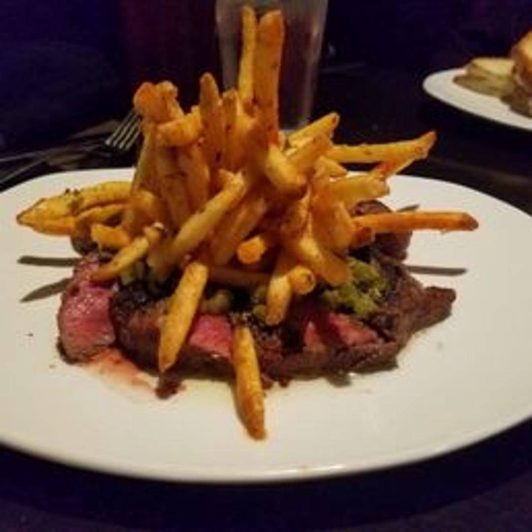 Grilled steak topped with vibrant chimichurri sauce, typically served with choice of sides.