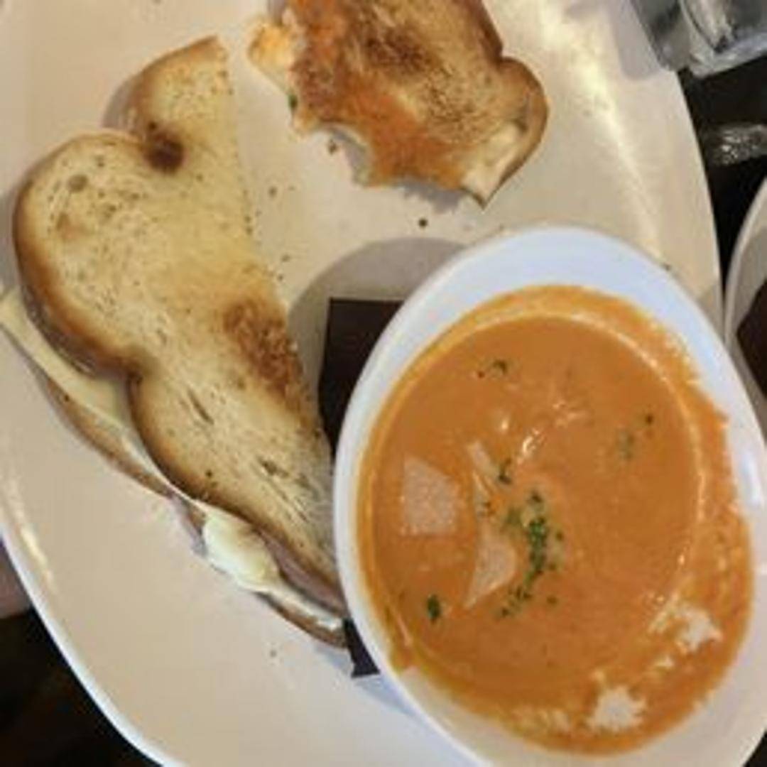 A classic creamy tomato soup, often served with grilled cheese croutons or a swirl of cream. A comforting and flavorful option.