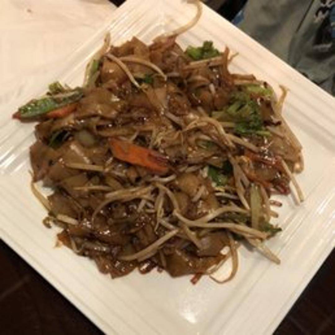A popular Malaysian stir-fried noodle dish. Flat rice noodles are wok-fried with prawns, Chinese sausage, cockles, bean sprouts, chives, and eggs in a savory soy sauce based sauce. Often features a smoky "wok hei" flavor.