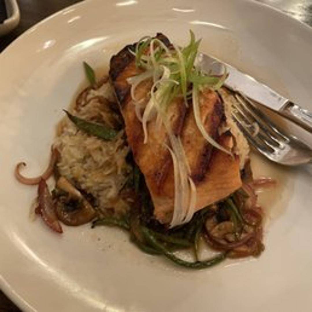 Pan-seared salmon drizzled with a tangy and savory ponzu sauce. Served with a side of seasonal vegetables and rice.