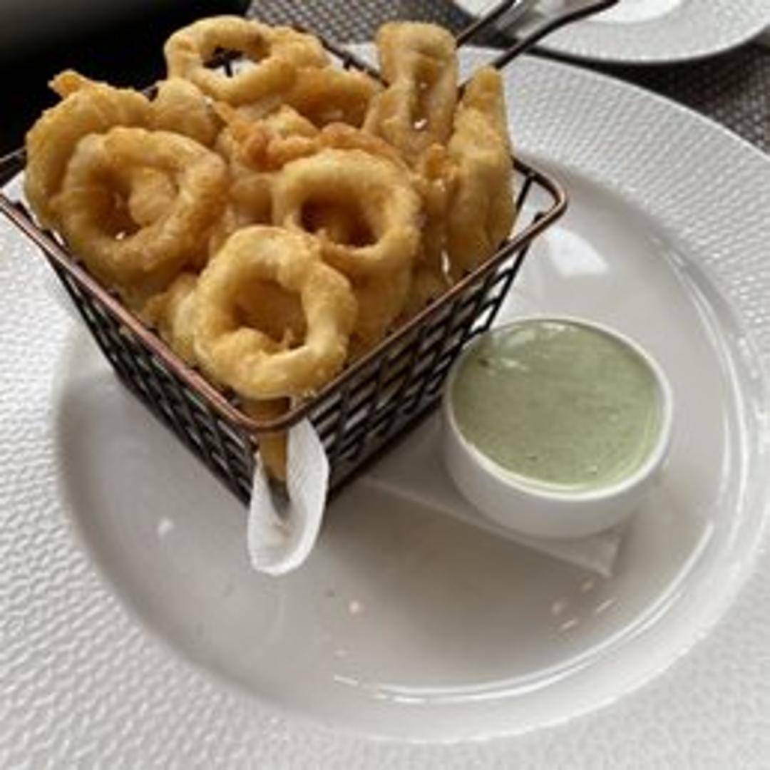 Tender calamari rings and tentacles, lightly dusted and fried to a golden perfection, achieving an irresistible crisp exterior while retaining a tender interior. Served with a vibrant house-made sauce, this classic appetizer is a delightful culinary indulgence.