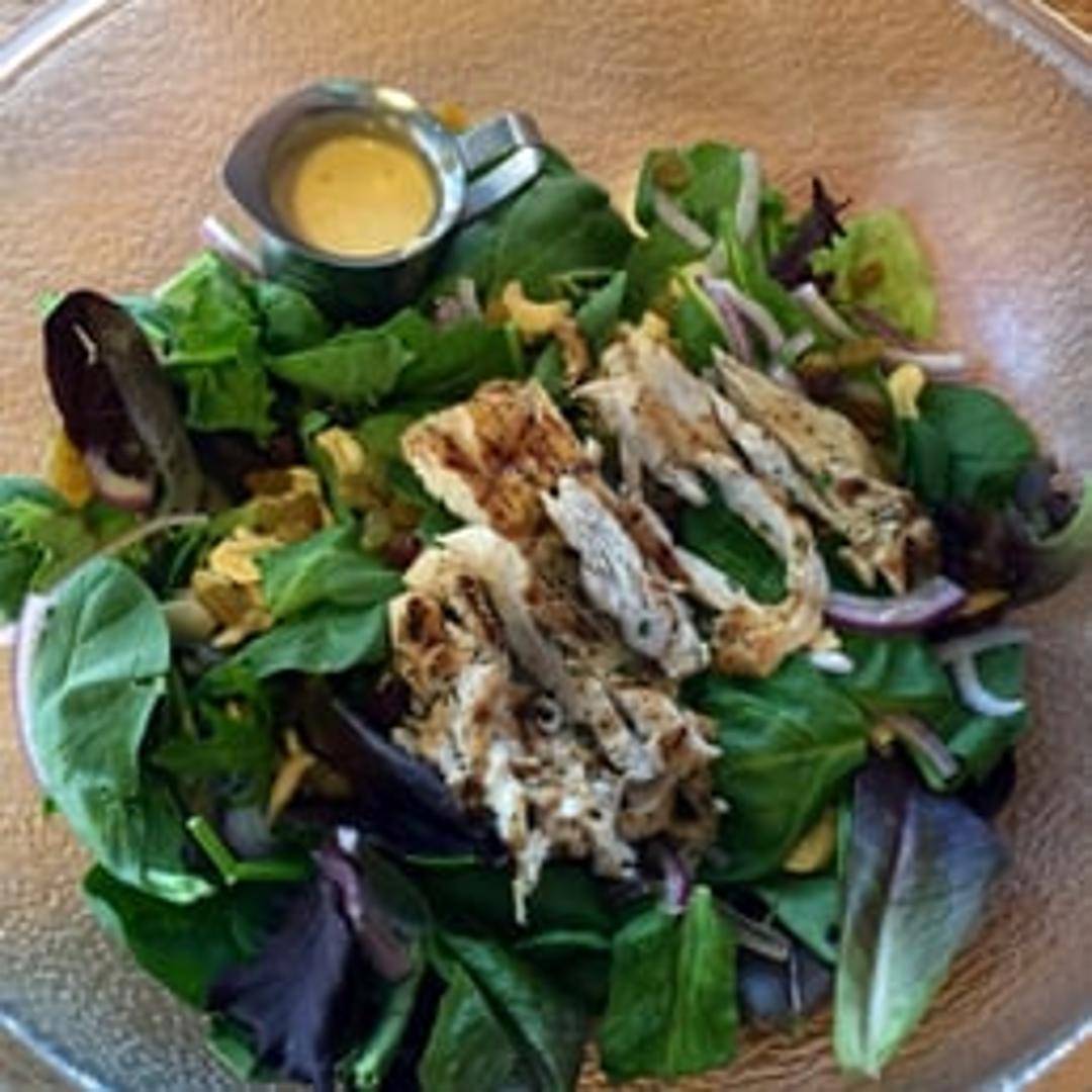 Fresh spinach sautéed with aromatic Indian spices, including turmeric, cumin, and coriander. Topped with tender, grilled chicken breast for a flavorful and healthy meal.