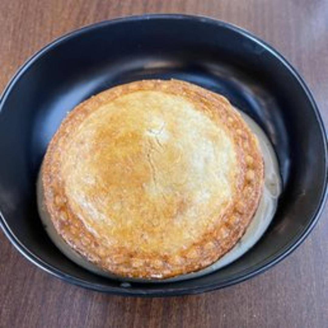 A comforting pot pie filled with tender chicken, vegetables, and rosemary in a creamy sauce, topped with a flaky crust. A flavorful and satisfying meal.