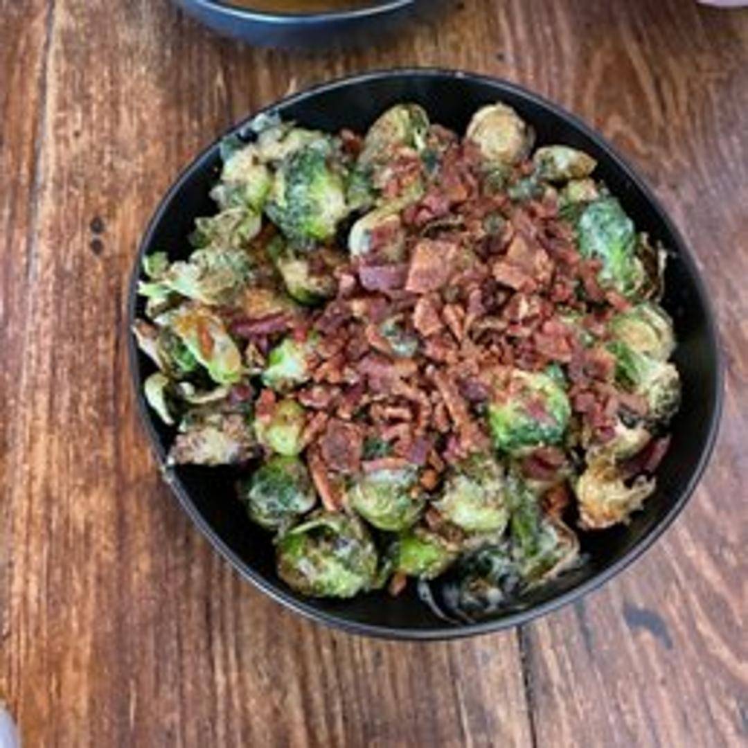A savory pie featuring roasted Brussels sprouts with complementary cheeses and herbs in a flaky pie crust.