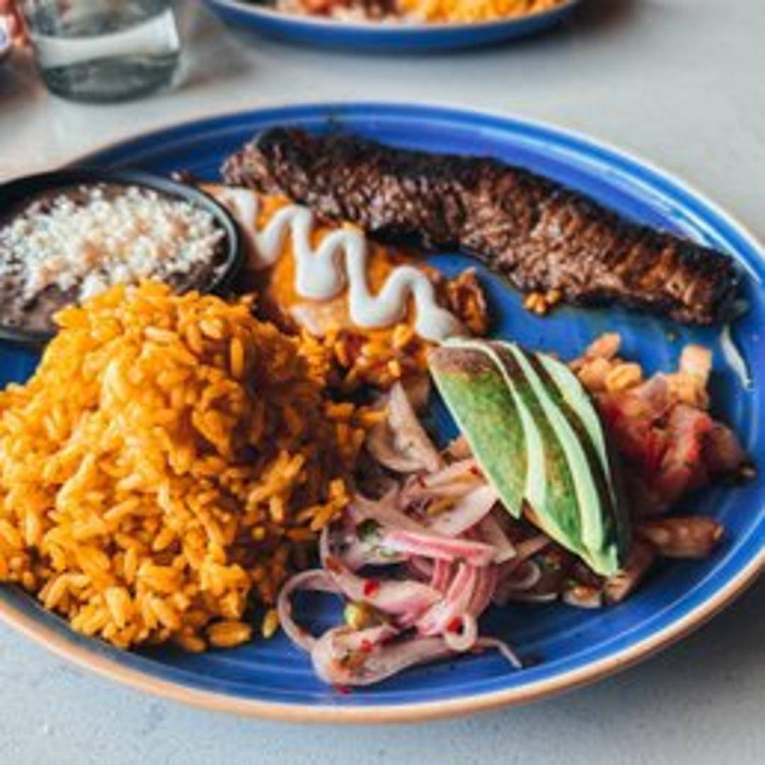 Grilled marinated steak, sliced and served with rice, beans, and warm tortillas. Includes your choice of sides.