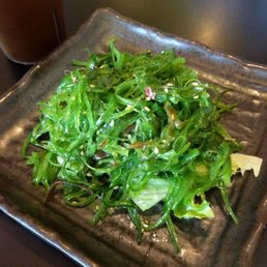 A refreshing and healthy salad made with seasoned seaweed, sesame seeds, and a light vinaigrette dressing.