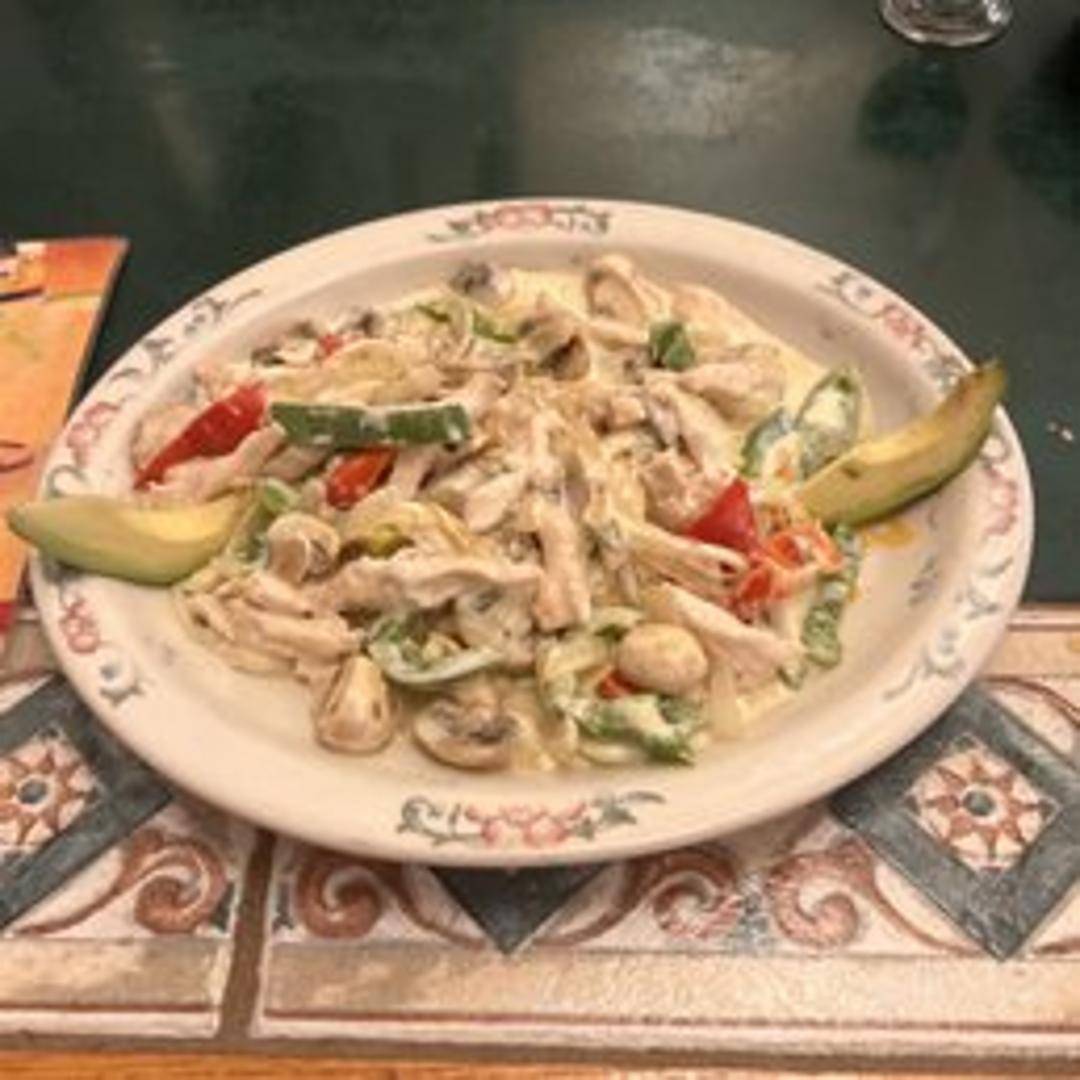 Tender chicken simmered in a creamy, slightly tangy sauce made with sour cream and a blend of spices. Served with rice and beans.