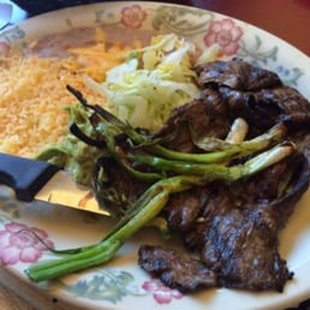 Thinly sliced grilled steak marinated in a blend of spices. Served with rice, beans, grilled onions, and your choice of tortillas.