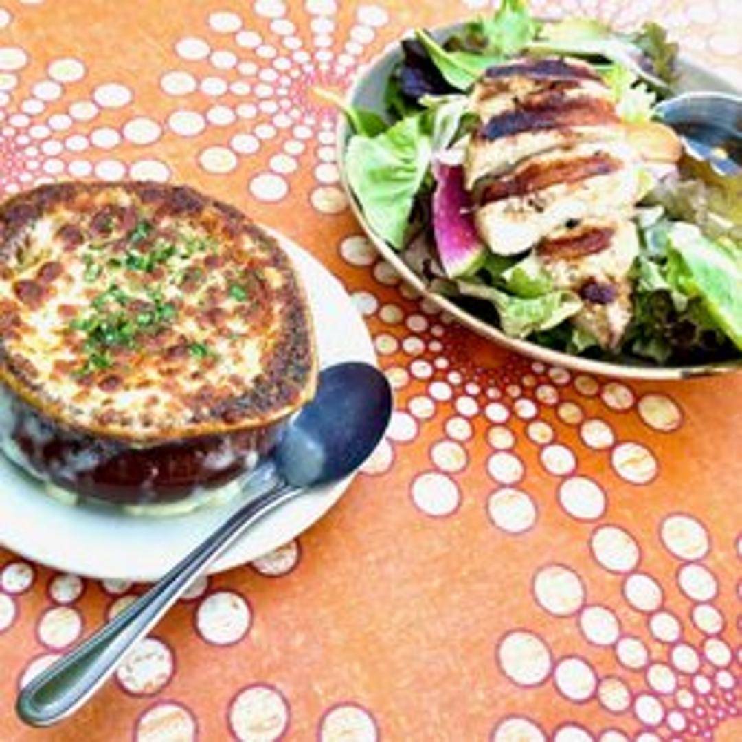 Savor the rich, comforting flavors of our traditional French Onion Soup. Made with slow-caramelized sweet onions simmered in a robust beef broth, generously topped with a toasted crouton and a blanket of melted Gruyère cheese, then broiled to a bubbly, golden finish.
