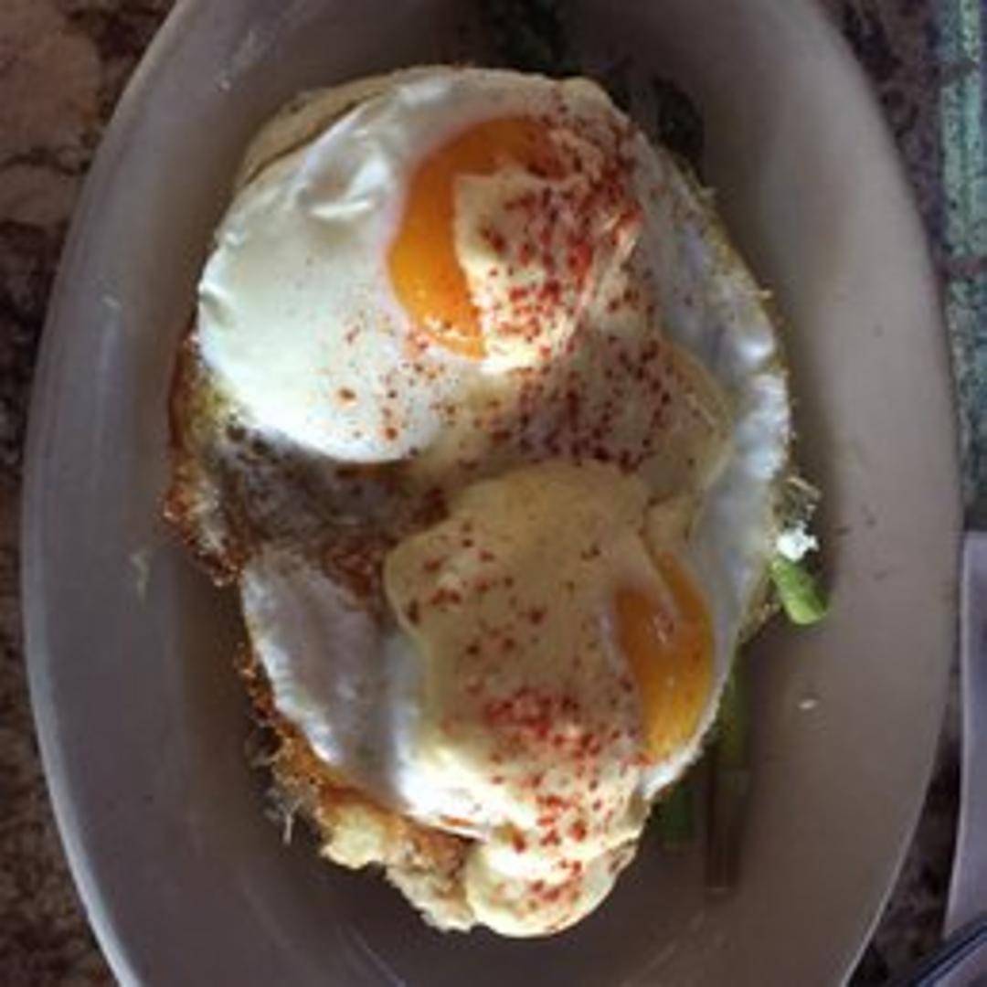 A refined twist on a brunch classic, our Crab Cake Benedict features two golden-brown, pan-seared crab cakes, generously packed with succulent lump crab meat and delicate seasonings. Each is elegantly topped with a perfectly poached egg, crowned with our creamy, house-made hollandaise sauce, and served atop a toasted English muffin for a harmonious blend of textures and flavors.
