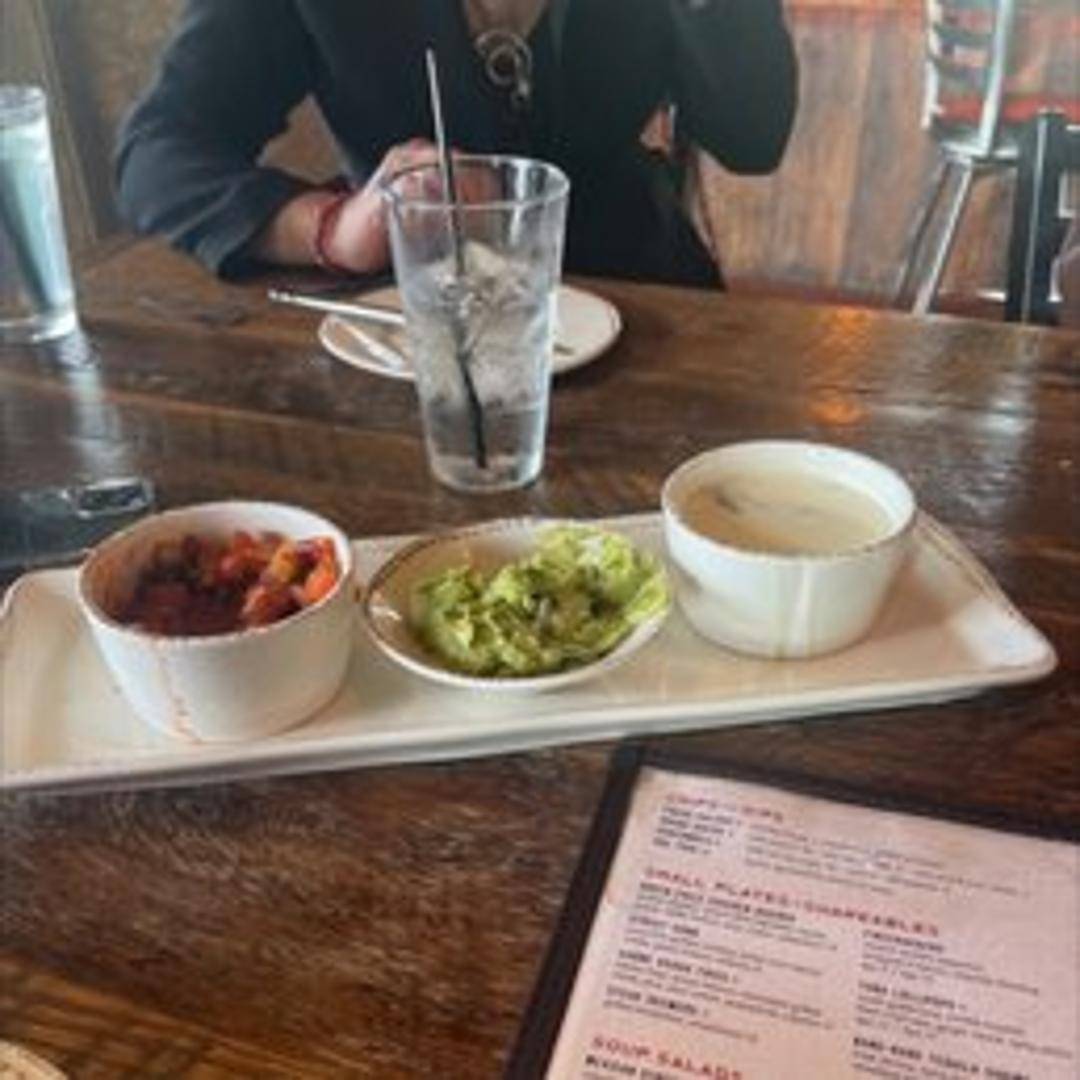 A signature appetizer from SOL, featuring a vibrant selection of three house-made dips: our freshly prepared pico de gallo with ripe tomatoes and cilantro, rich and creamy guacamole made from Hass avocados, and a warm, velvety queso blanco, all served with a generous basket of crispy tortilla chips.
