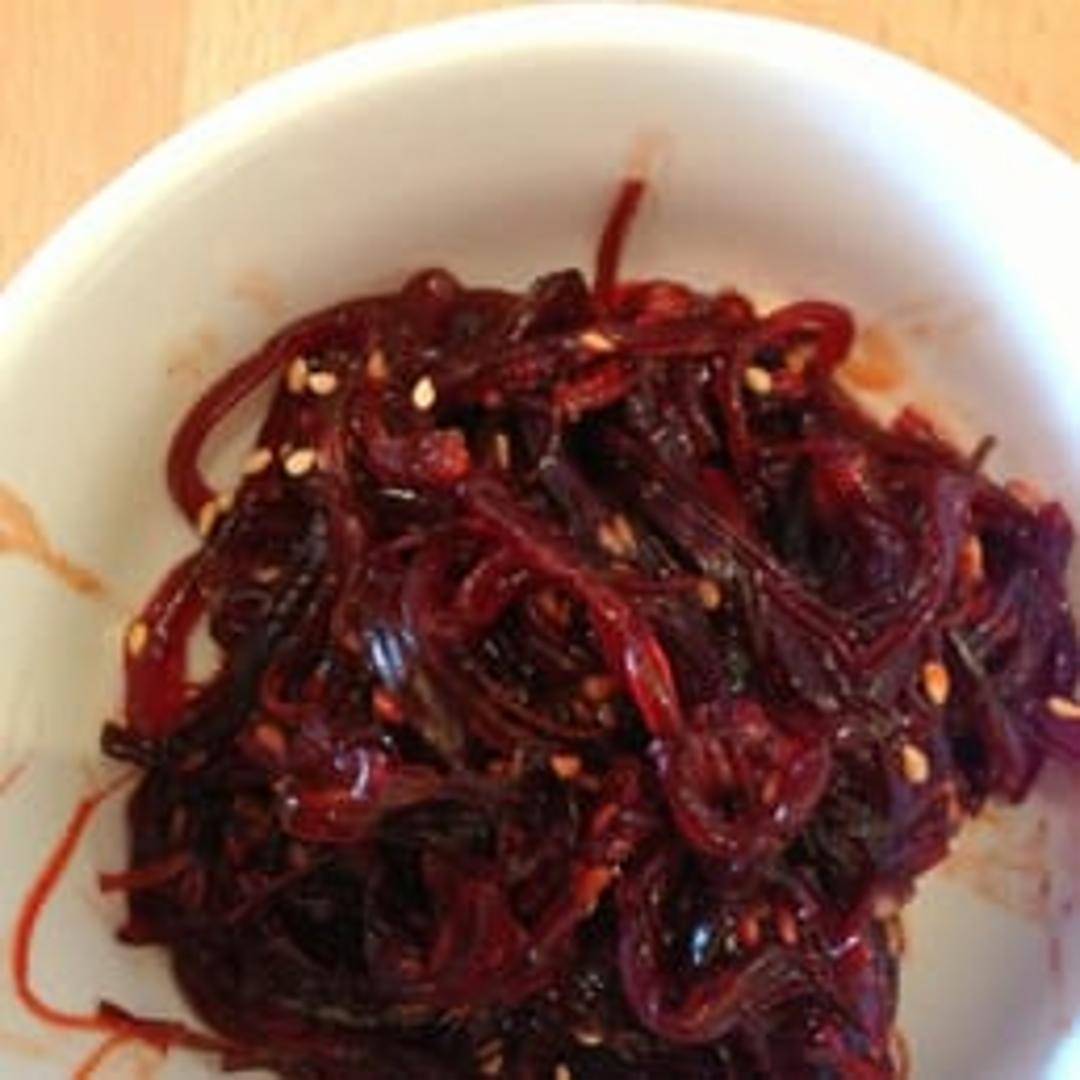 A refreshing salad made with various types of seaweed, often dressed with a sesame-based vinaigrette.