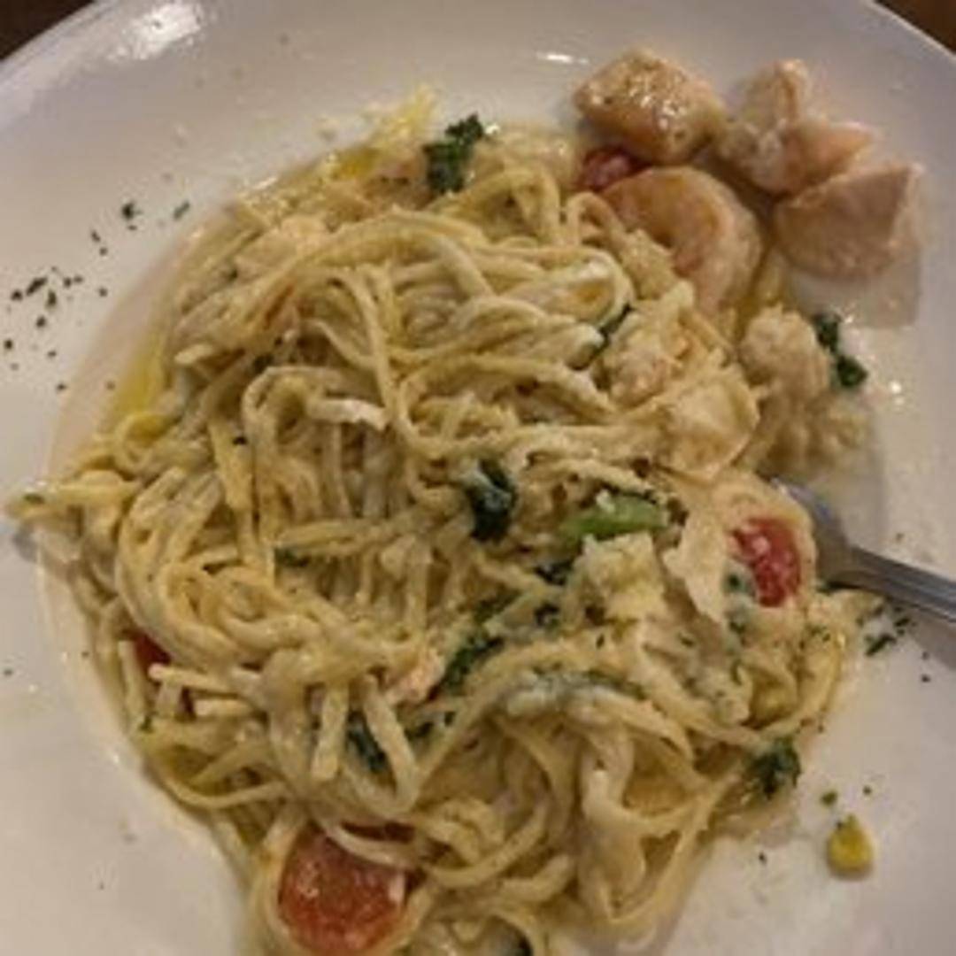 Linguine pasta tossed with a medley of fresh seafood, including shrimp, mussels, and calamari, in a light and flavorful garlic wine sauce.