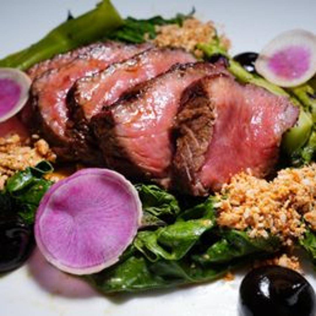 A perfectly seared and tender ribeye steak, known for its rich marbling and robust flavor. Served with seasonal accompaniments.