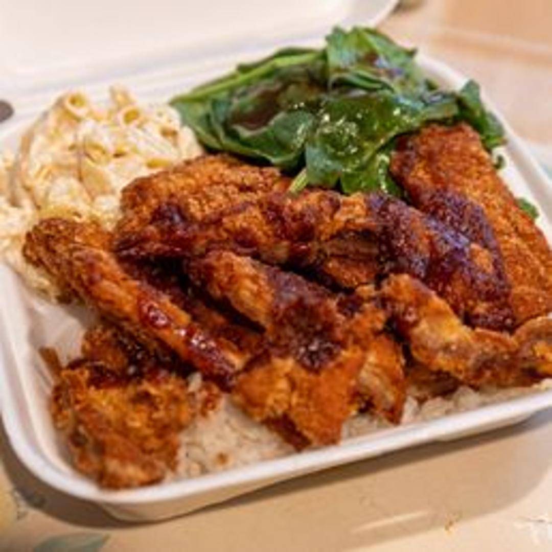 Crispy, breaded chicken cutlet, deep-fried to golden perfection, served with katsu sauce, steamed rice and macaroni salad.