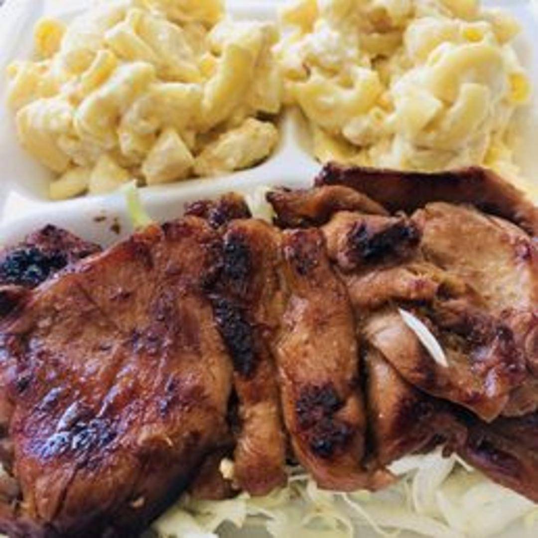 Tender grilled chicken marinated in a sweet and savory Hawaiian glaze, served with steamed rice and macaroni salad.