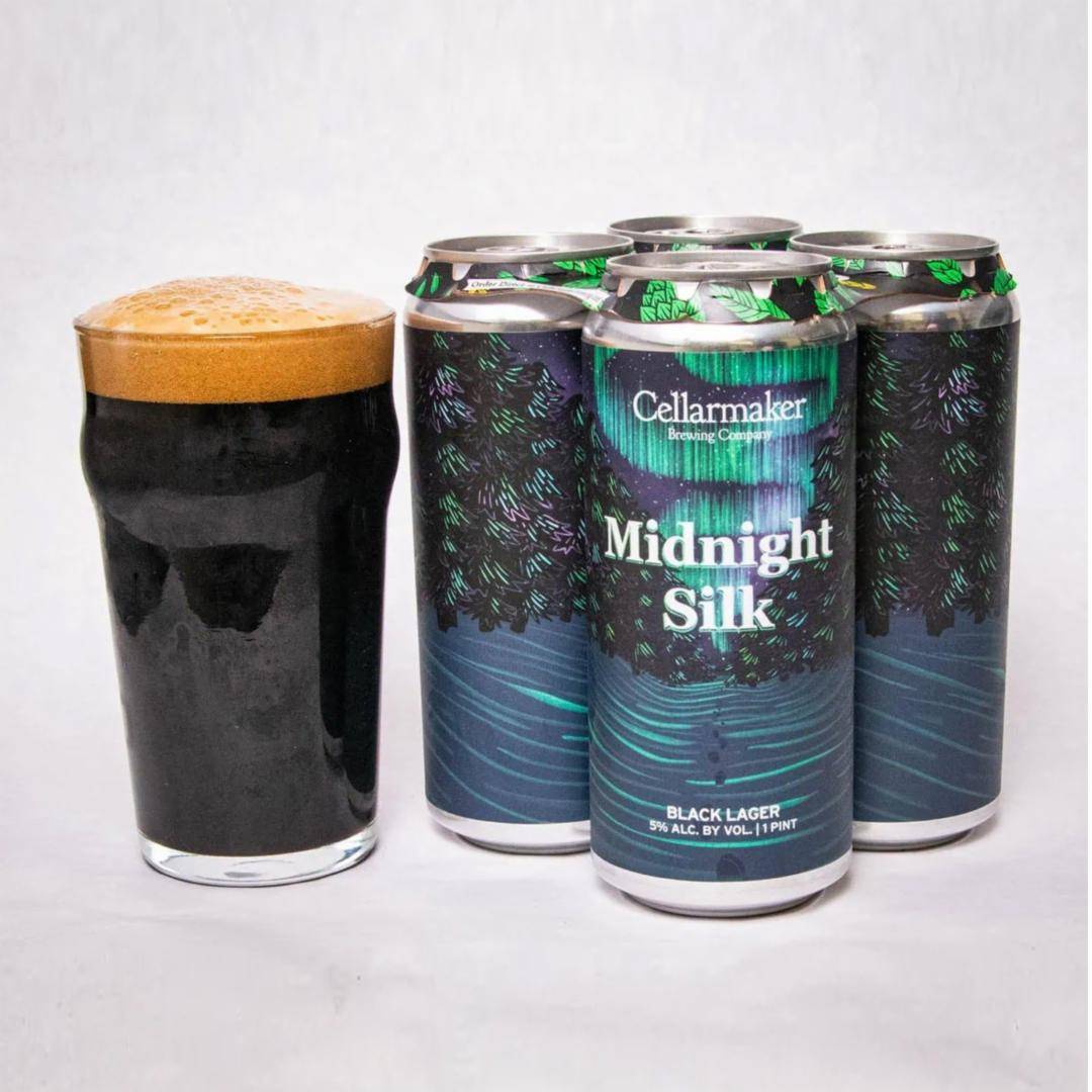 Midnight Silk Black Lager • 5% ABV With an enticing French roast coffee aroma, rich and nutty 70% cacao chocolate bar comes to mind when sipping this smooth black lager. Midnight Silk isn’t flashy, but isn’t understated either. This is a beer drinker’s beer meant for long drinking sessions filled with good conversation or quiet contemplation.