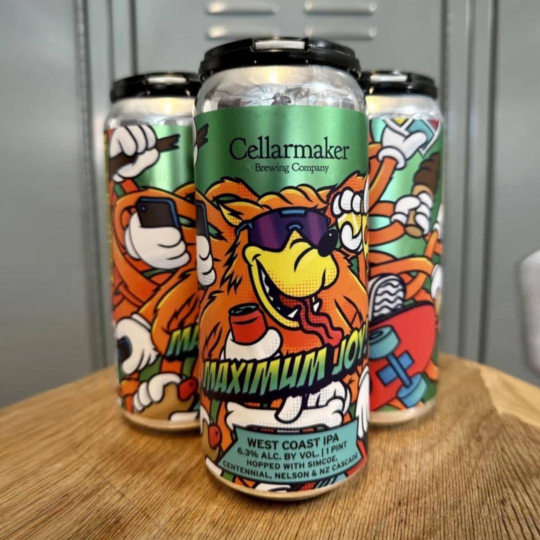 Maximum Joy West Coast IPA • 6.3% ABV Assertive American Simcoe and Centennial hops balance out the tropical fruit flavors of two New Zealand grown hops (Nelson Sauvin and Riwaka) with melon, citrus and earthy pine sap aromas and flavors. This high intensity international IPA is designed to electrify the pleasure center of your dome, like a smooth operator, for maximum joy.