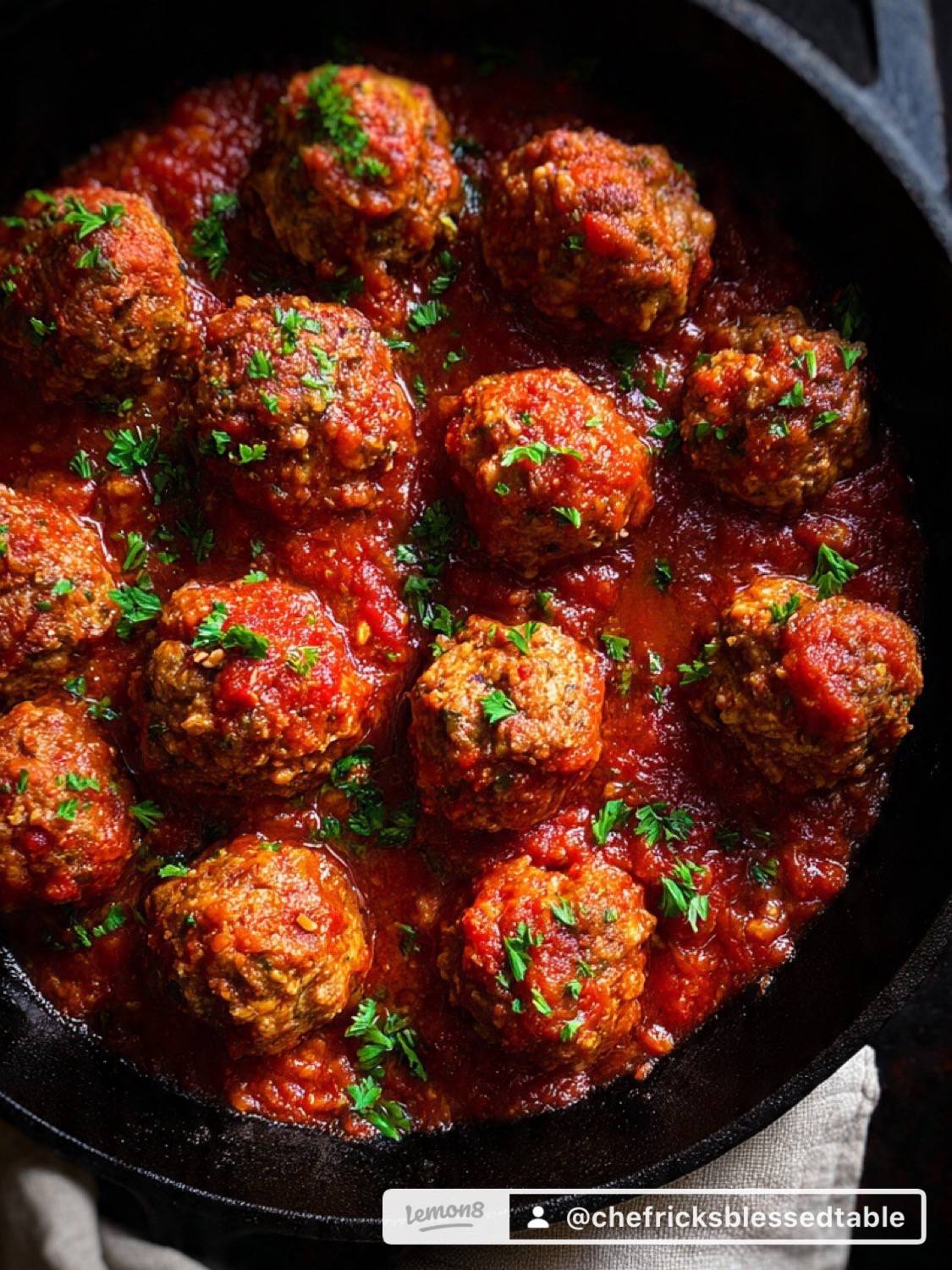 Giant Homemade Meatballs* – Chef Rick’s Blessed Table’s signature monster meatballs, made with a secret blend of beef, pork, and Italian seasonings, smothered in rich homemade marinara sauce. These jumbo, tender meatballs are perfect for appetizers, sandwiches, or pasta toppings. Served in a generous pan, ideal for feeding a crowd! *Free Delivery in Pasco and Hernando County* #ChefRickBlessedTableCatering