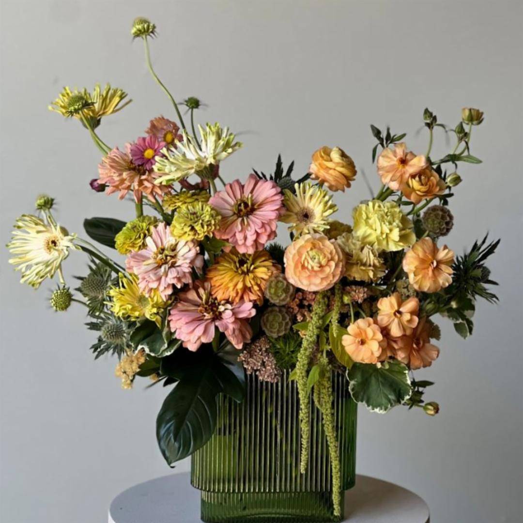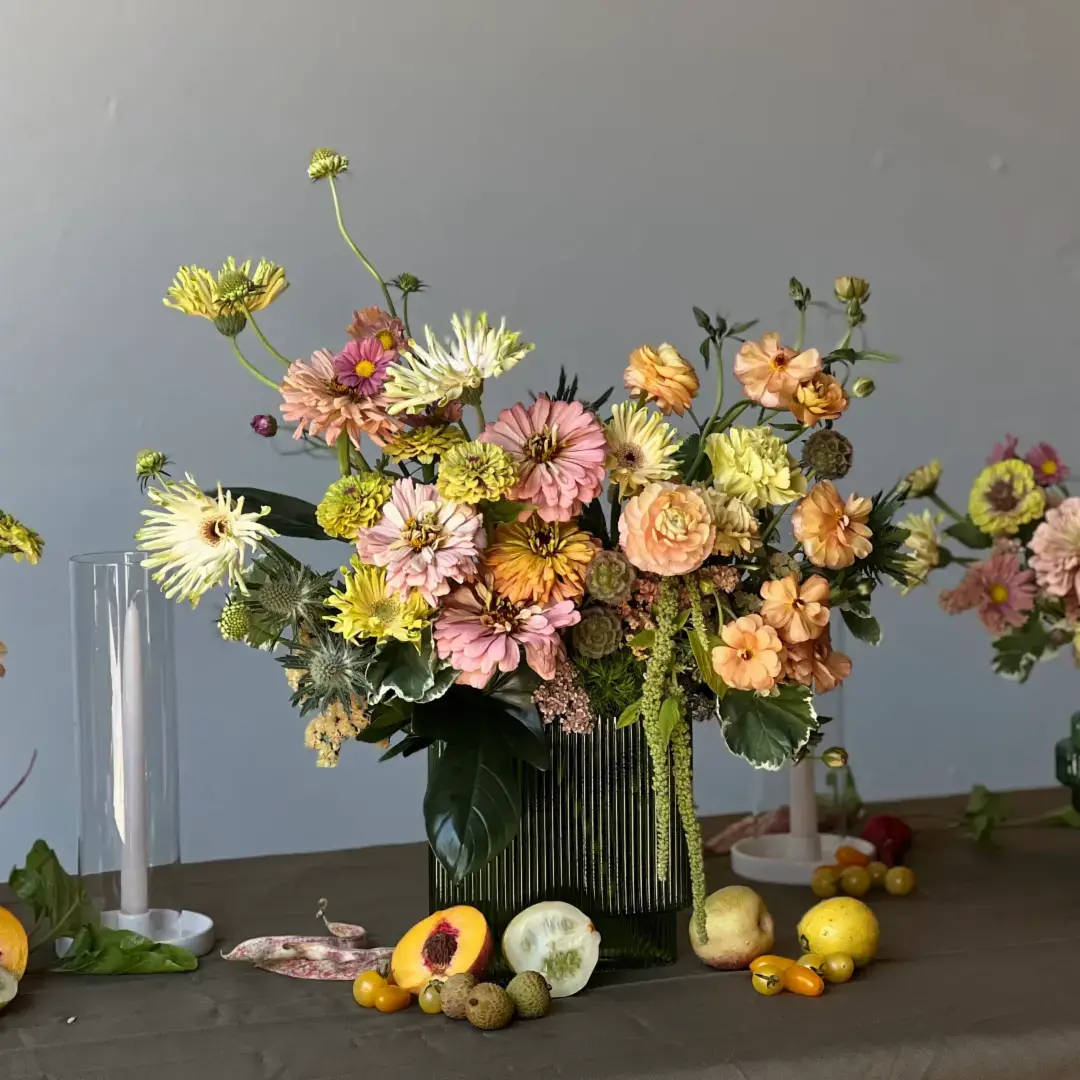 45,00 $ - 225,00 $ Description **Minimum QTY Required - 3 Items The A La Carte Peaches and Cream palette brings a playful pop to any space. These designs can be made in decorative green glass as shown or in low clear glass for a more subtle effect. Select the add fruit option to add a lush and juicy element by table count. For long tables add fruit for 3 tables to get the full effect. We require 48 hours notice in order to process a la carte events and to make sure that we have sufficient product for the quantity ordered. If your event is within 48 hours, please call the boutique to confirm whether or not we can accept your order. Shipping & Returns Shipping At Nigella we offer pickup at our SF shop and local delivery in the Bay Area. Rates are calculated based on the distance from our shop. All fees collected for delivery go directly to our couriers. We partner with local trusted couriers that have a strong history and success rate of handling our delicate products and navigating the often tricky nature of delivering in the Bay Area. Our drivers will always keep the deliveries stored in a safe manner while en route to ensure quality upon delivery. They will first attempt to deliver directly to the recipient. If recipients are unavailable our drivers will attempt to call to ensure safe delivery. When recipients are unresponsive our drivers will leave the products in a safe location. Our drivers collect photo proof of delivery. Returns All sales are final and refunds can only be issued if there is an error with an order or if a product is defective. A note on cut flowers and plants: Flowers and plants are highly perishable and require basic care and handling to maintain longevity. Most floral arrangements will look fresh for approximately 5 days. Occasionally some flowers are more perishable than others. If a bloom or two reach the end of their life but the rest are still looking lovely, remove the spent flower and continue enjoying. For best results with cut flowers make sure you keep the water fresh and full. Avoid direct sunlight and heating or AC draft. For live plants- each has a specific set of care tips that will contribute to its survival and longevity. In general plants need light and water to live. Every space is different and plants will react to their surroundings. If you have specific care questions please reach out to us and we can help you. If you received or sent a plant or an arrangement and there is a quality issue upon arrival, please call our shop or email us info@nigellasf.com and we will work to remedy the situation quickly.
