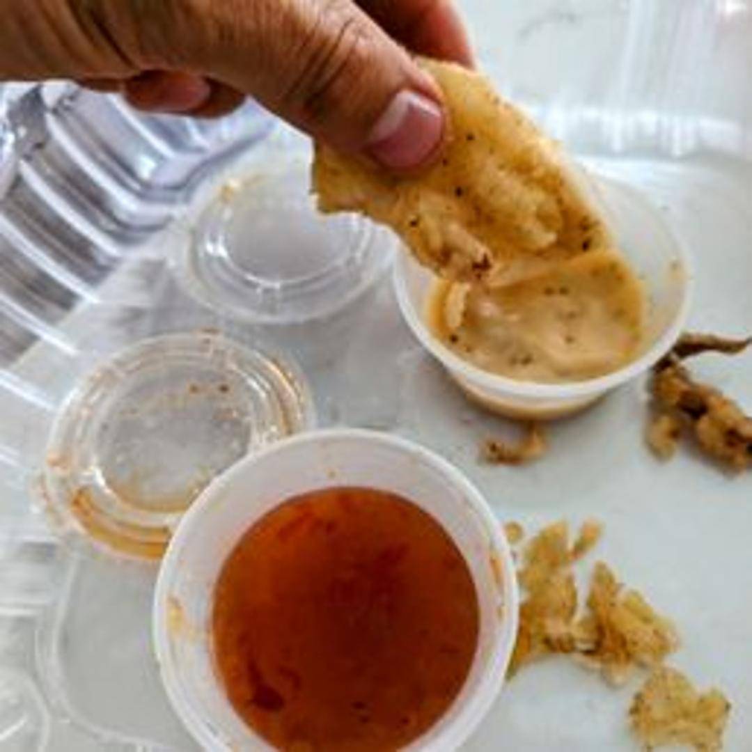 Tender squid, lightly battered and deep-fried until golden brown and crispy. Served with a dipping sauce.
