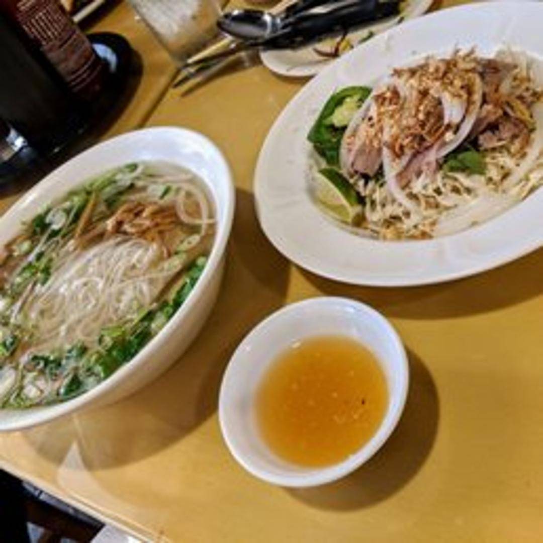 A refreshing Vietnamese noodle dish consisting of cold vermicelli rice noodles topped with your choice of grilled protein (such as pork, chicken, or shrimp), fresh vegetables (like lettuce, cucumbers, and pickled carrots), bean sprouts, and herbs. Served with a side of nuoc cham, a flavorful Vietnamese dipping sauce.
