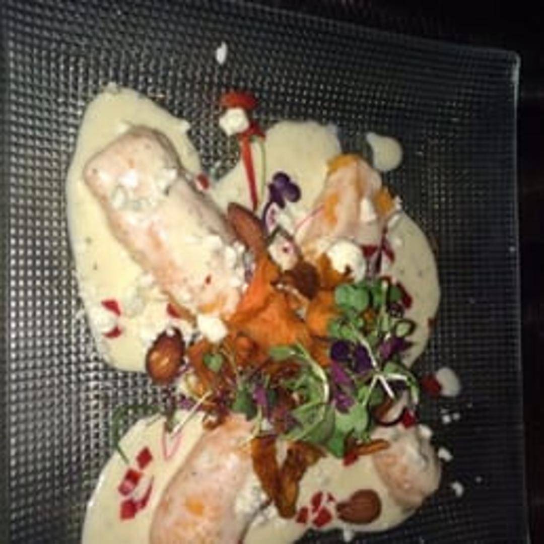 Hand-crafted gnocchi made with tender sweet potato, yielding a pillowy, melt-in-your-mouth texture with a hint of natural sweetness. These delicate dumplings are often lightly pan-seared or tossed in a refined sauce, such as brown butter and sage or a light cream emulsion, showcasing their comforting warmth and nuanced flavor, often accompanied by fresh herbs or seasonal vegetables.