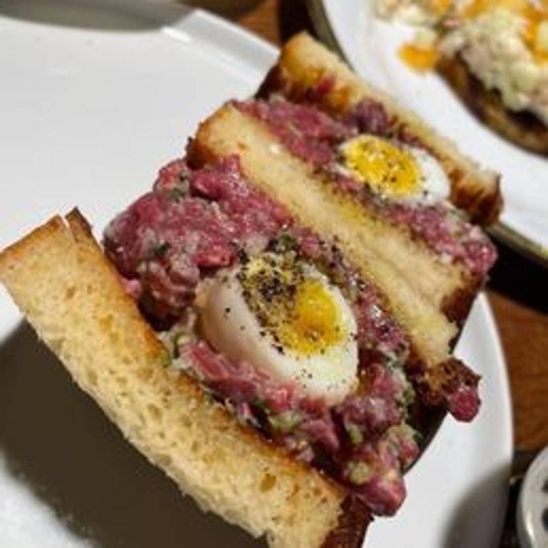 Finely chopped raw beef seasoned with capers, onions, herbs, and a raw egg yolk.