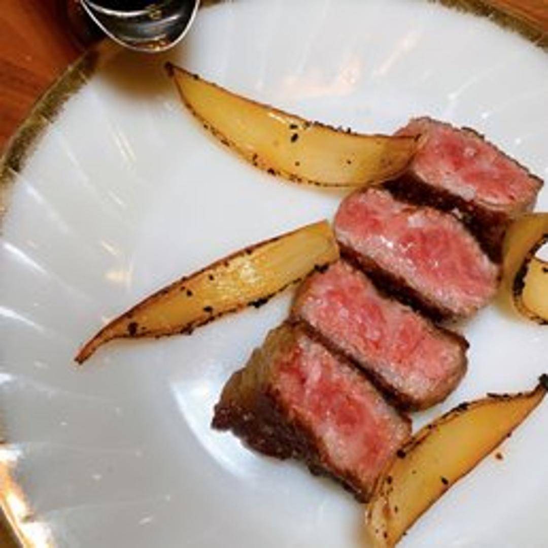 Exquisitely marbled, melt-in-your-mouth Japanese A5 Wagyu beef. Sourced for its exceptional quality and unparalleled flavor, offering a truly luxurious and unforgettable dining experience. Prepared and served to highlight its natural richness and tenderness.