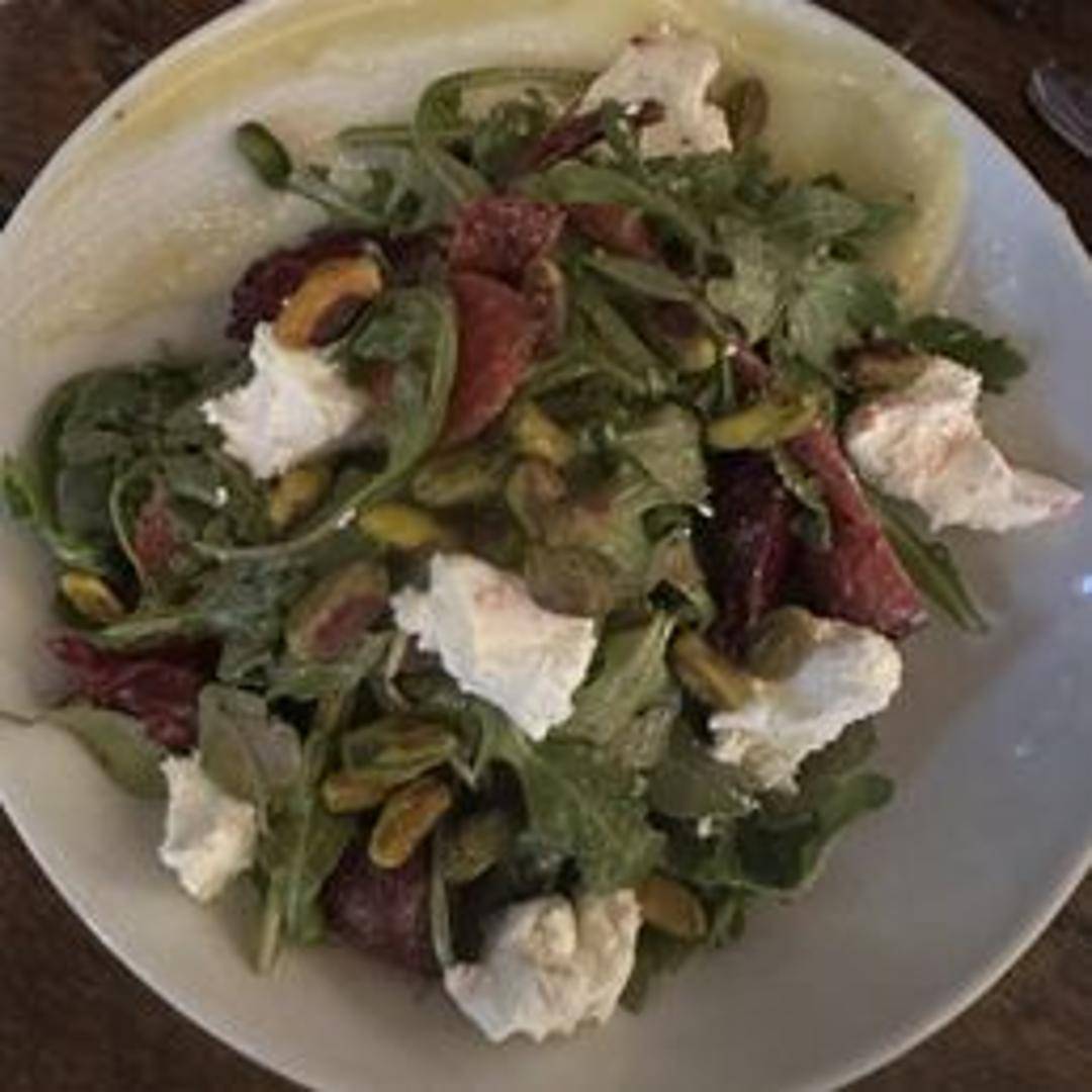 Roasted red and golden beets with goat cheese, candied walnuts, baby arugula, and a citrus vinaigrette.