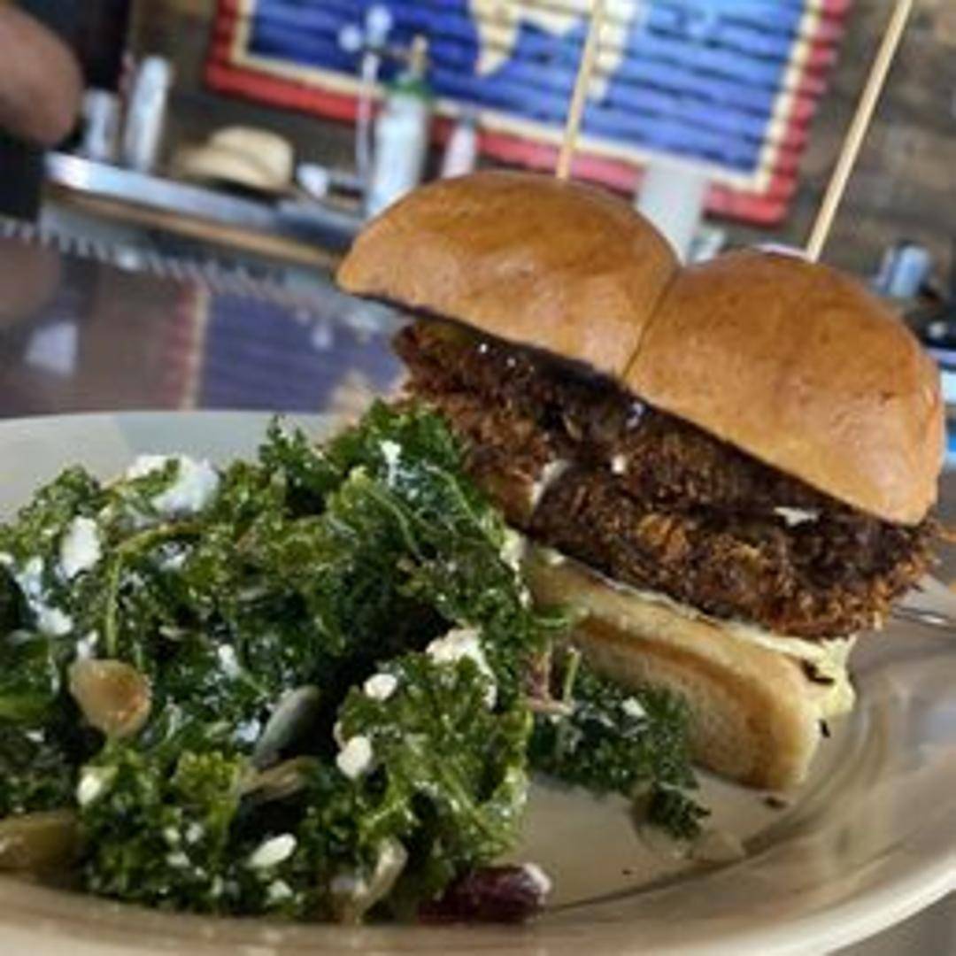 A hearty portion of chicken breast, coated in seasoned breading and fried to a crispy golden brown. Served with creamy gravy and your choice of sides.