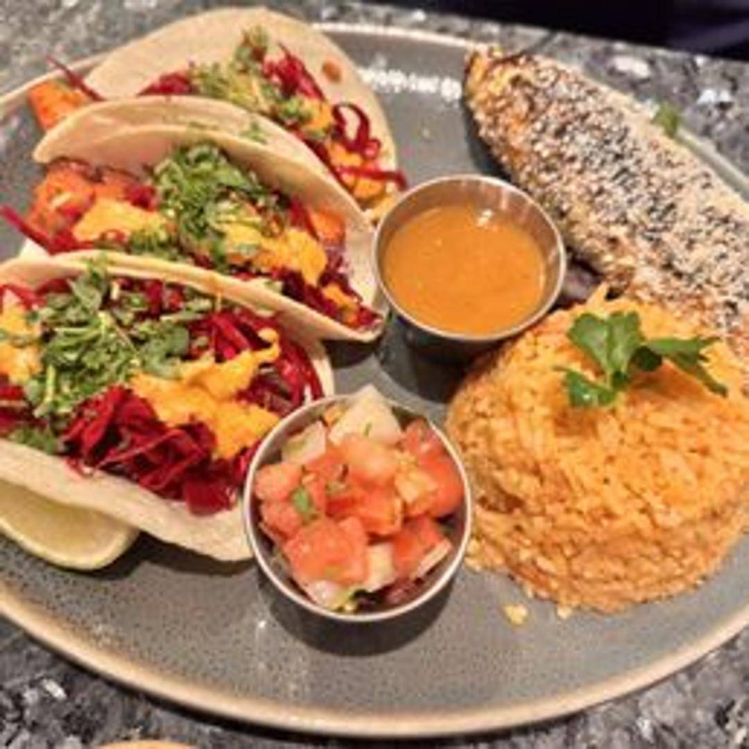 Tacos filled with flaky and flavorful fish, often grilled or battered and fried. Served with a variety of toppings such as cabbage slaw, pico de gallo, and a zesty sauce.