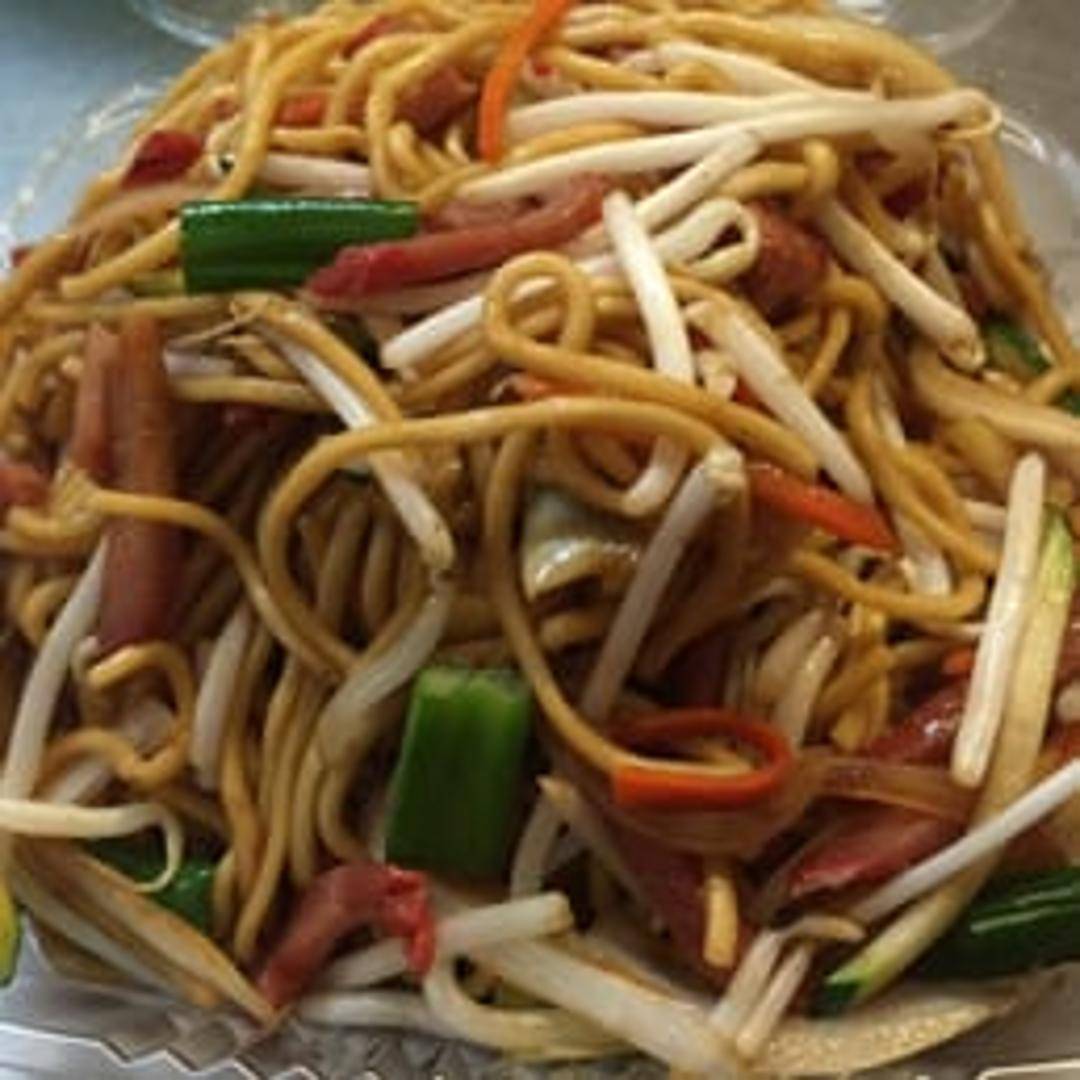 Wide, flat rice noodles stir-fried with succulent slices of BBQ pork, bean sprouts, onions, and scallions in a flavorful soy sauce mixture.