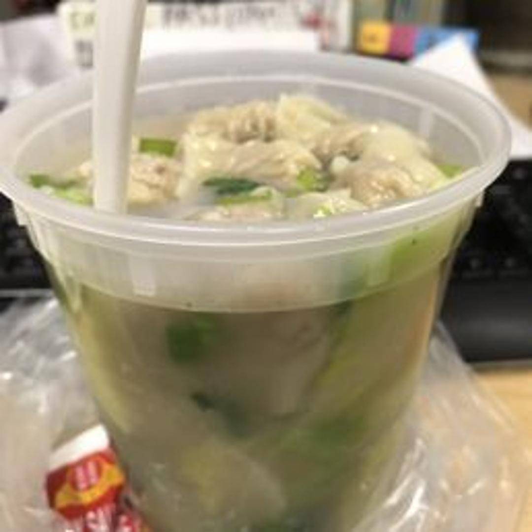 Clear and flavorful broth filled with delicate, pork-filled wontons. Garnished with sliced scallions and a drizzle of sesame oil. A comforting and light soup, perfect as a starter or a light meal.
