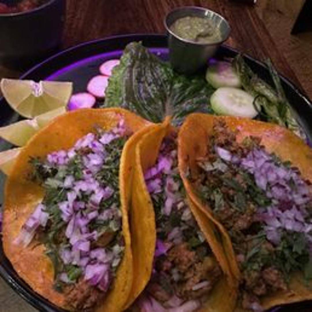 Authentic Mexican street tacos filled with slow-cooked, tender and flavorful carnitas (shredded pork). Served on small, soft corn tortillas, and typically topped with diced onions, fresh cilantro, and a squeeze of lime. May be served with a side of salsa and/or other traditional taco toppings.