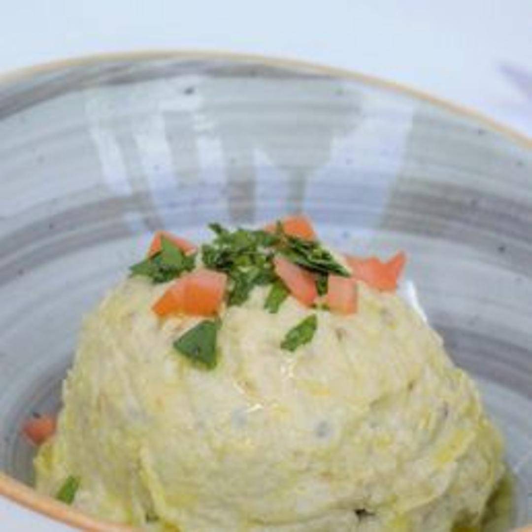A classic Levantine dip crafted from fire-roasted eggplants, lending a smoky depth to its creamy texture. Blended smoothly with tahini, fresh lemon juice, and a hint of garlic, it's drizzled with olive oil and garnished with fresh parsley, perfect for dipping warm pita.