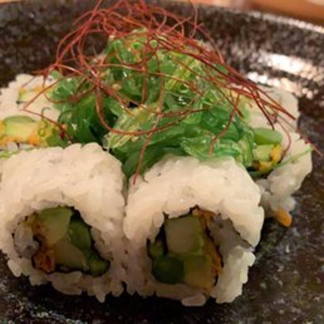 A classic Japanese appetizer featuring fresh, vibrant green wakame seaweed, marinated in a light, savory dressing typically made with sesame oil, soy sauce, rice vinegar, and often garnished with toasted sesame seeds. It offers a refreshing, slightly sweet, and tangy flavor with a distinct chewy texture.