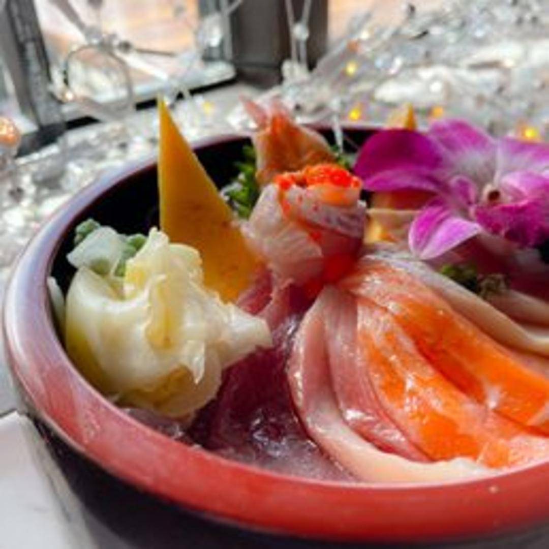 Experience the art of Japanese cuisine with our elegant Chirashi bowl. This 'scattered sushi' masterpiece features a colorful assortment of expertly sliced fresh raw fish, including tuna, salmon, and yellowtail, delicately arranged over a bed of seasoned sushi rice. It's a visually stunning and satisfying dish that offers a taste of various premium seafood.