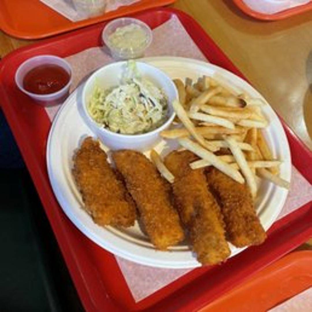 Flaky white fish, battered and fried to a golden crisp. Served with tartar sauce and lemon wedge. Made with fresh Alaskan seafood.