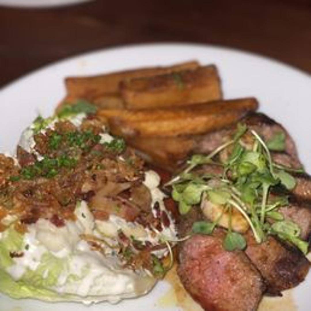 A premium cut of New York Strip steak sourced from Creekstone Farms. Known for its rich flavor, tender texture, and well-marbled quality. Prepared to the desired temperature and typically served with a selection of sides and sauces.