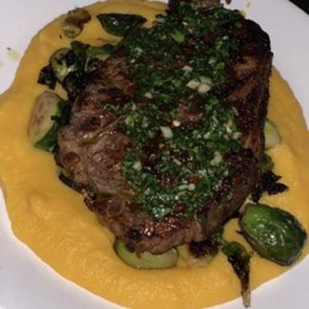 A premium cut of rib eye steak, renowned for its rich marbling which contributes to its exceptional tenderness and profound beefy flavor. Expertly cooked to your desired temperature, this steak is a culinary highlight, promising a juicy and robust dining experience.