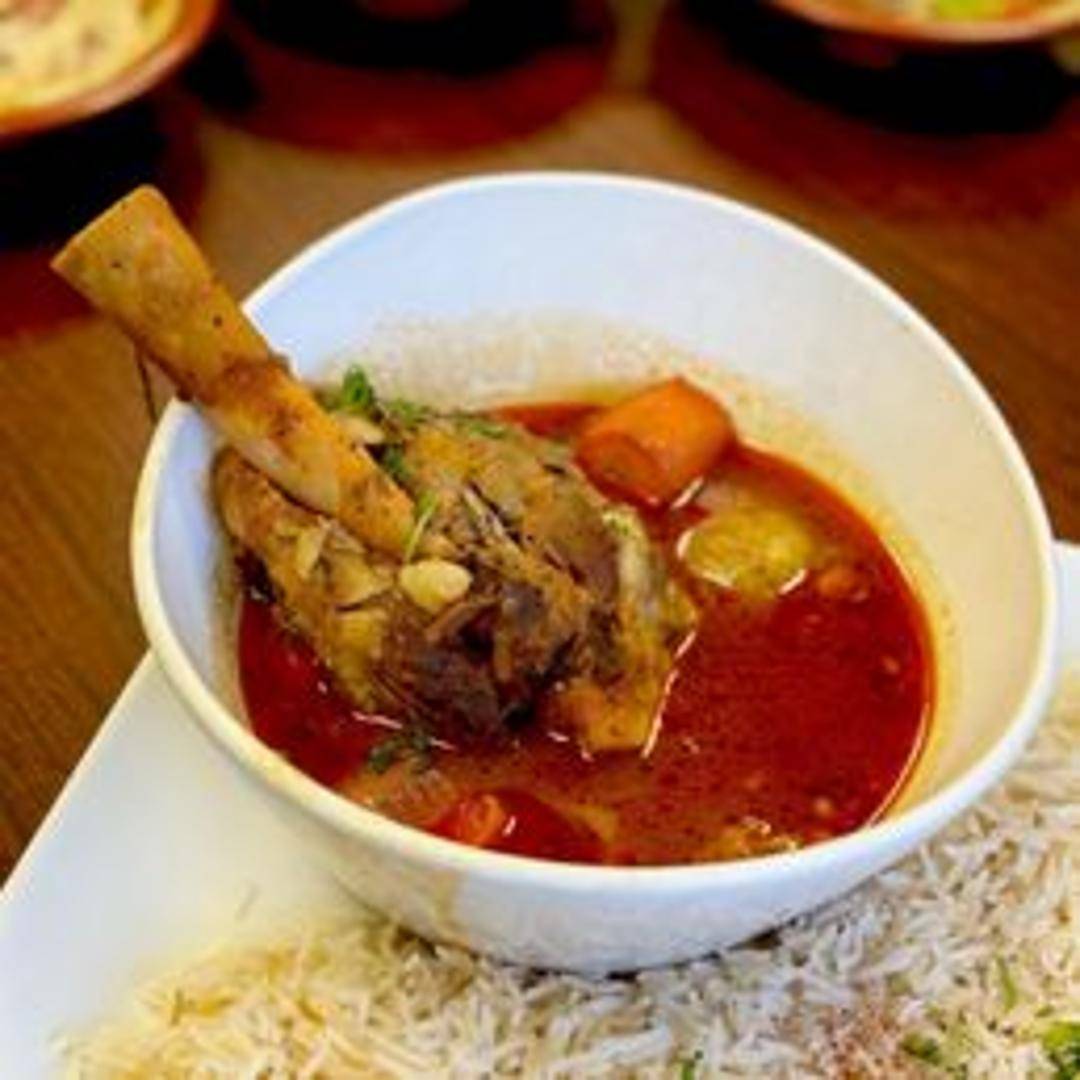 Tender and slow-cooked lamb shank, braised in a rich and aromatic sauce. Served with rice and vegetables.
