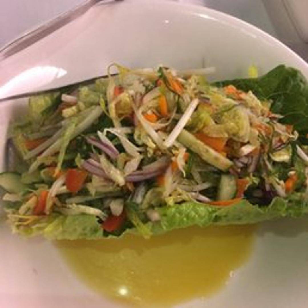 A refreshing and vibrant salad featuring a mix of various seaweed types, marinated in a light and tangy sesame dressing. This healthy and flavorful salad offers a unique texture and umami taste. Garnished with sesame seeds.